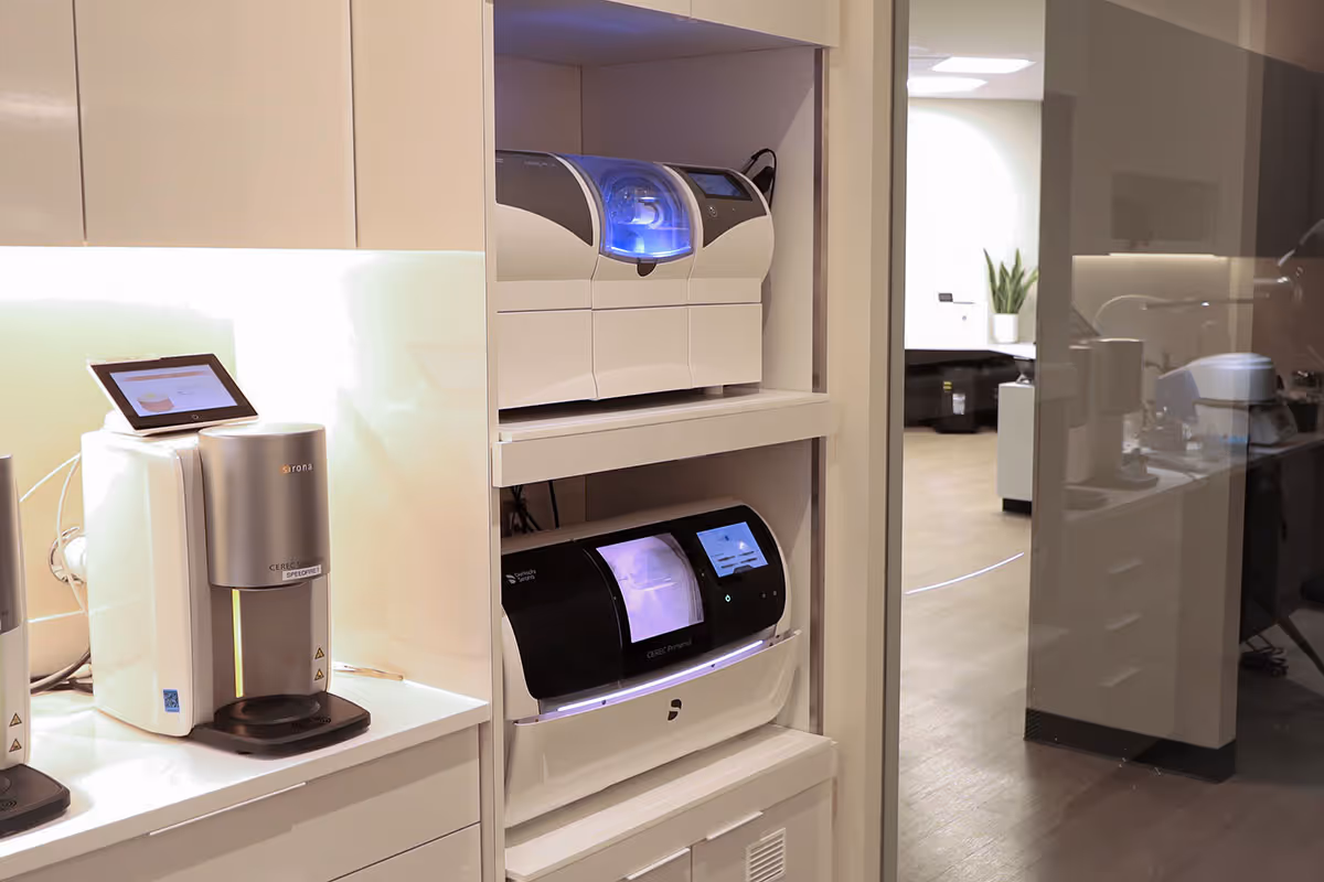 Our on-site milling machines fabricate your custom crown in under an hour, using durable, high-quality ceramic material. Once it’s ready, we carefully place and adjust the crown for a seamless fit and look, leaving you with a fully restored tooth and a confident smile—all in a single visit.
